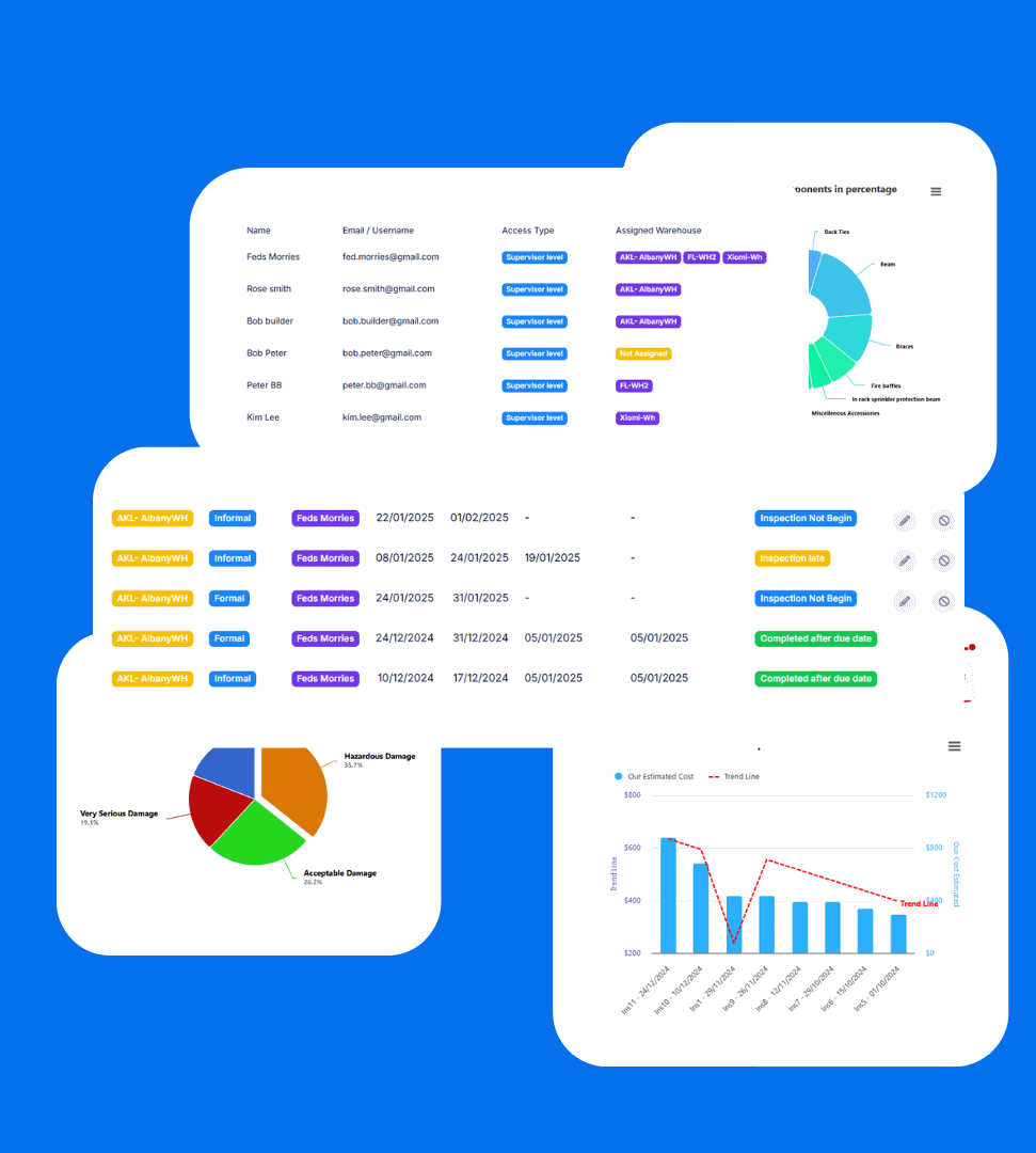 Our Pallet Racking Inspection Software is designed to streamline the management of your racking systems. With an intuitive interface and powerful features, the software ensures your racking systems are safe, compliant, and efficient.